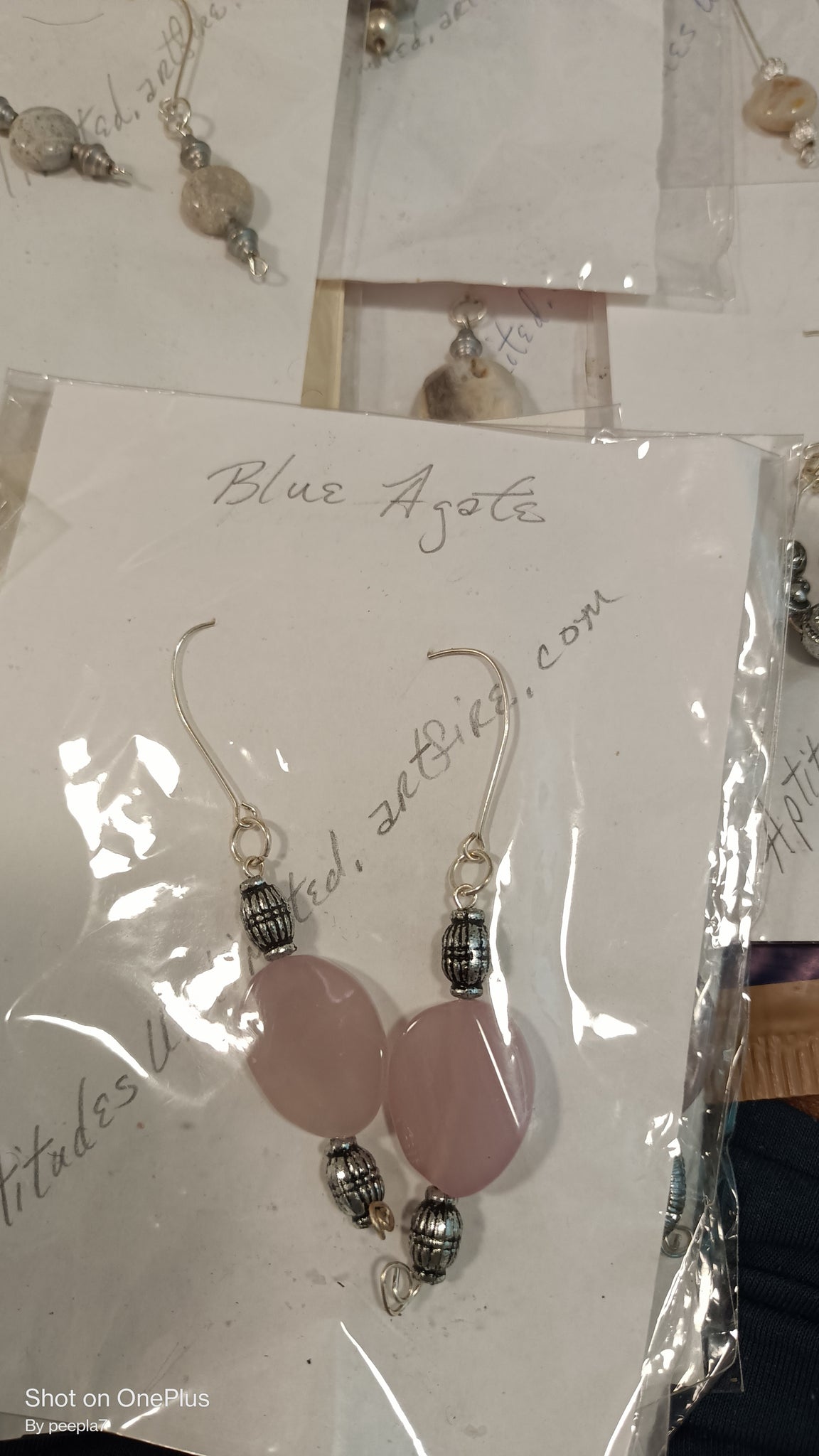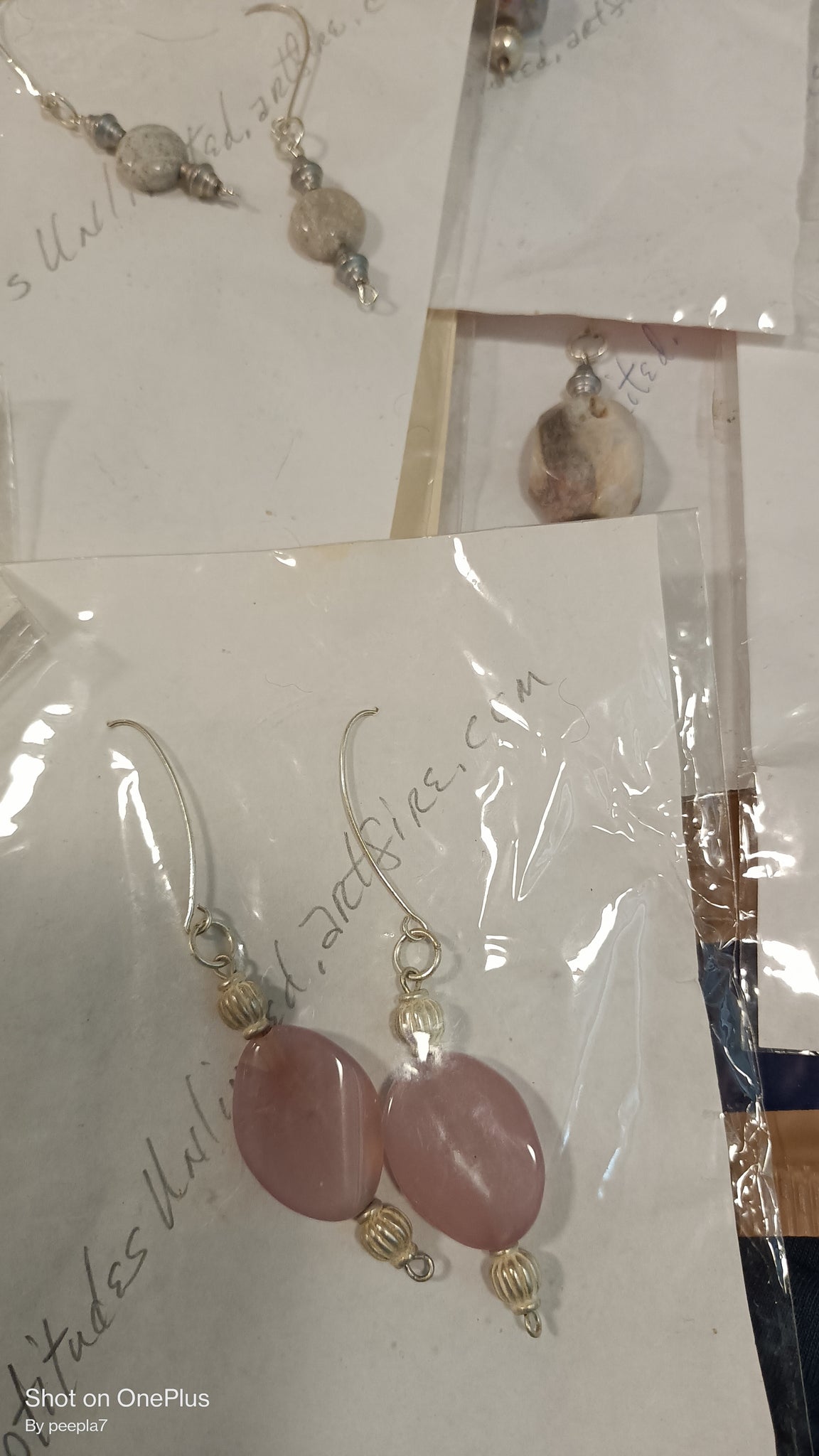 Random selection of stone jewelry...earrings or pendants. Ranging from natural stones to agate, Jasper, or a couple of beads and wire work earrings. Select one Pendant, Earrings, Wire, or Random.