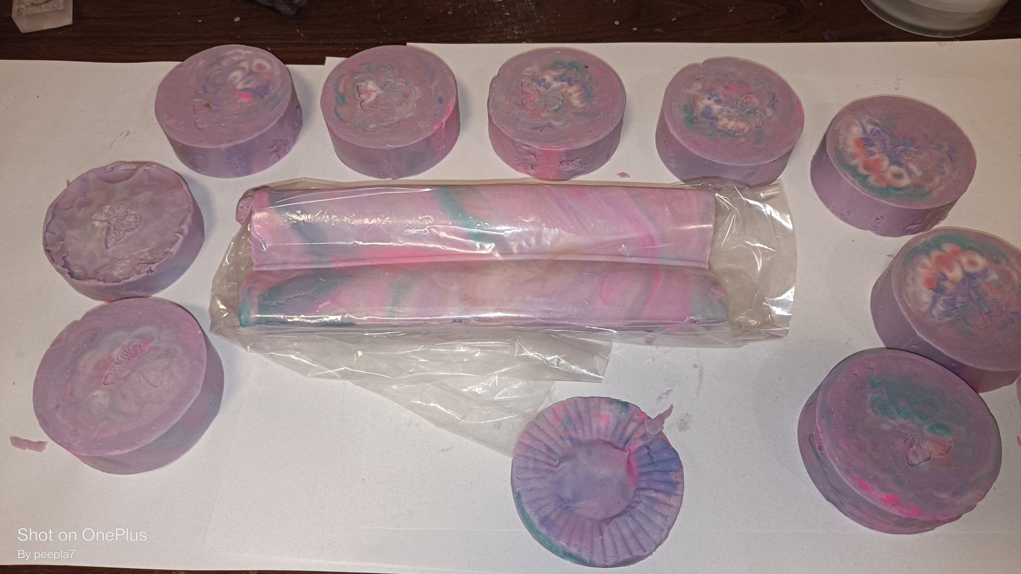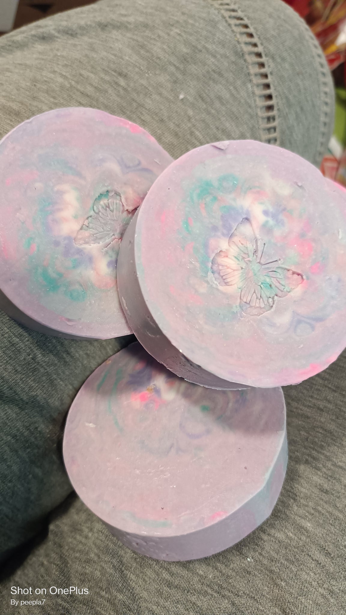 The scent of the butterfly is Narcissist*, a dupe of Narcisco Rodriguez cologne. The scent is trademarked and copyrighted so I can't name the resulting soap by that name. Therefore the name Blossom was suggested by Betty, and I added the name Butterfly.